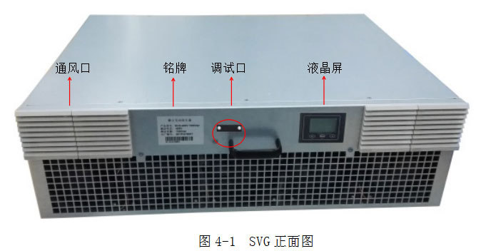 2.核对产品标签,确认设备的正确性。设备外壳贴有铭牌、眉头,标明了ZLDL-SVG型号、容量及主要参数。