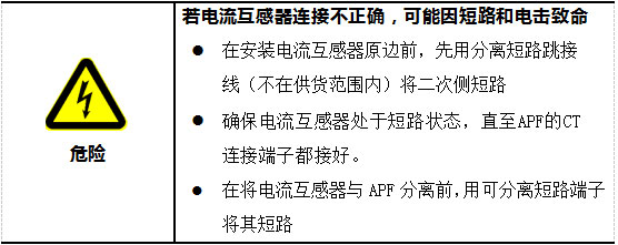 【注】电流互感器接在系统电源侧,测量APF与负荷的总电流,APF做闭环补偿。