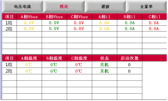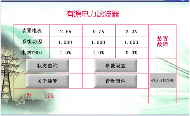 实时报警:显示APF装置当前状态下的故障或者警告。
