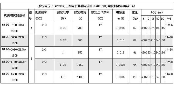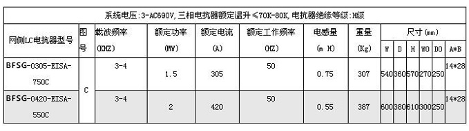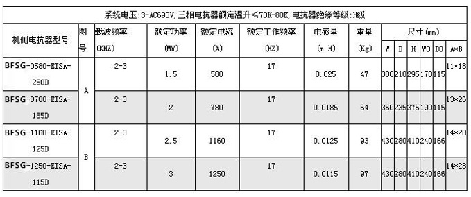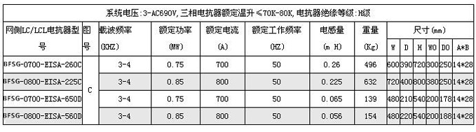 全功率发电机侧滤波电抗器技术参数: