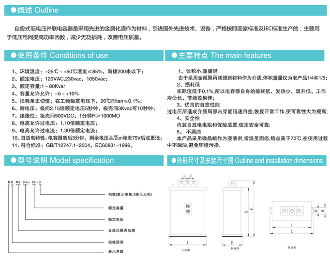 5.用小型断路器作短路?;な保Π吹缛萜鞫疃ǖ缌?-3 倍选择,严禁断路6.电容器从电源切除后一定要保证电容器剩余电压降至10% 额定电压才允许再次投入