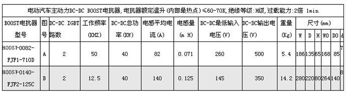 电动汽车主动力DC-DC BOOST电抗器技术参数:
